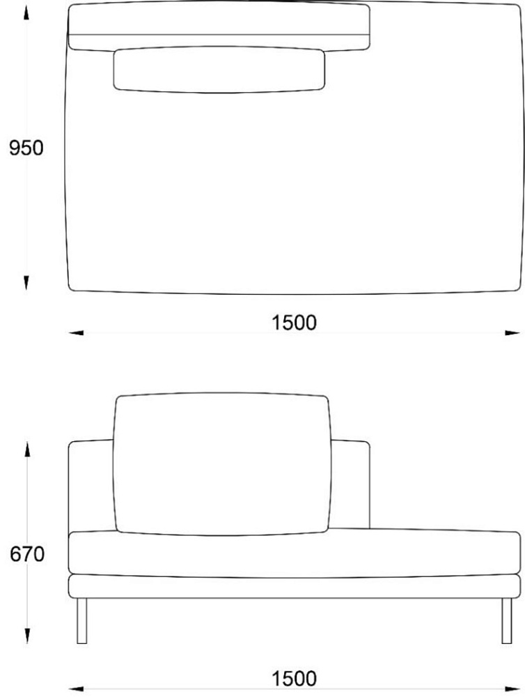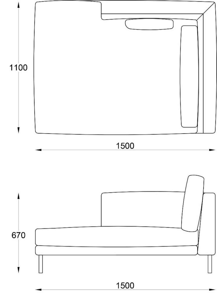 • Модуль лежанка Light правая 1100х1500хH670